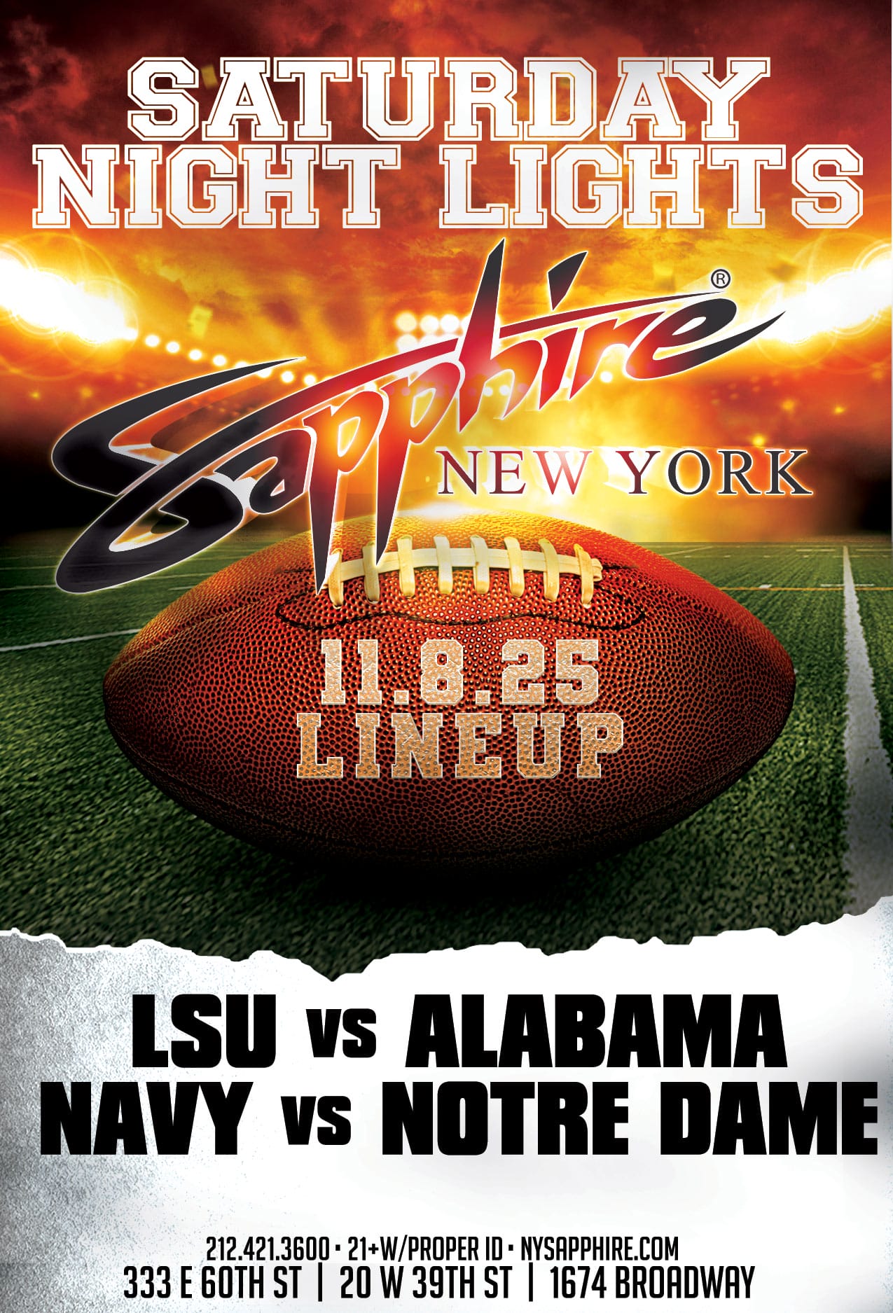 Sapphire NYC has three premium locations, with different events and specials every single night! It’s non-stop entertainment in the most luxurious settings for any mood or occasion. Looking for a bite to eat, a vibey place to watch the next game, or a special event elevated with one of our VIP packages? Check out our calendar and choose what vibes with you. See you at Sapphire.