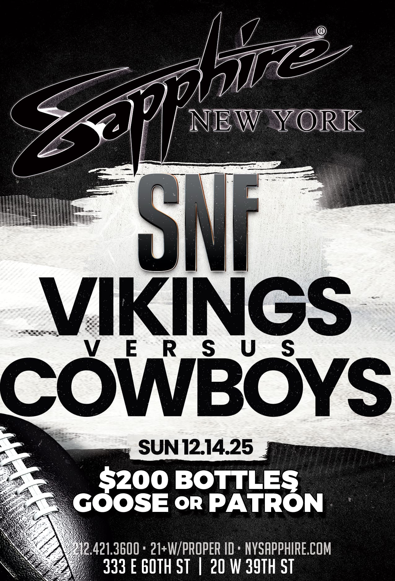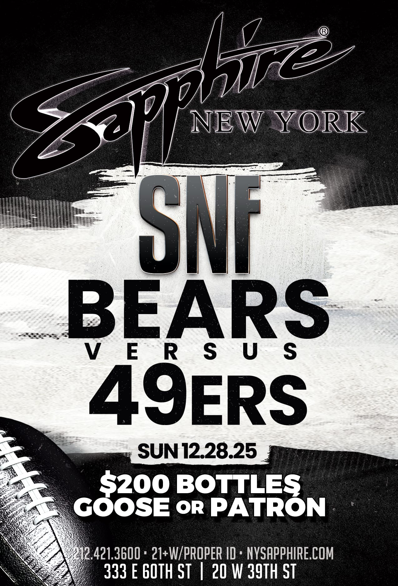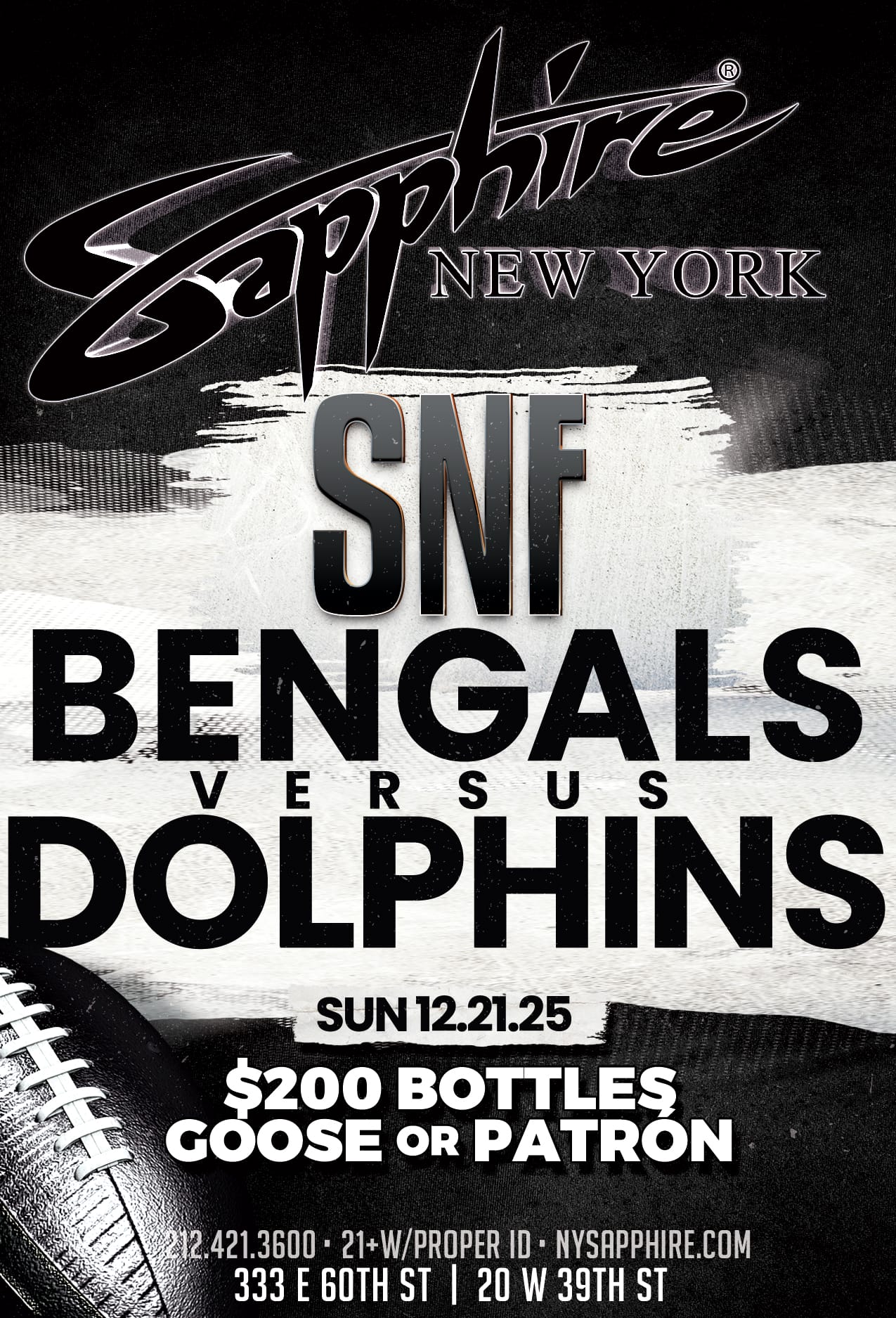 Sapphire NYC has three premium locations, with different events and specials every single night! It’s non-stop entertainment in the most luxurious settings for any mood or occasion. Looking for a bite to eat, a vibey place to watch the next game, or a special event elevated with one of our VIP packages? Check out our calendar and choose what vibes with you. See you at Sapphire.