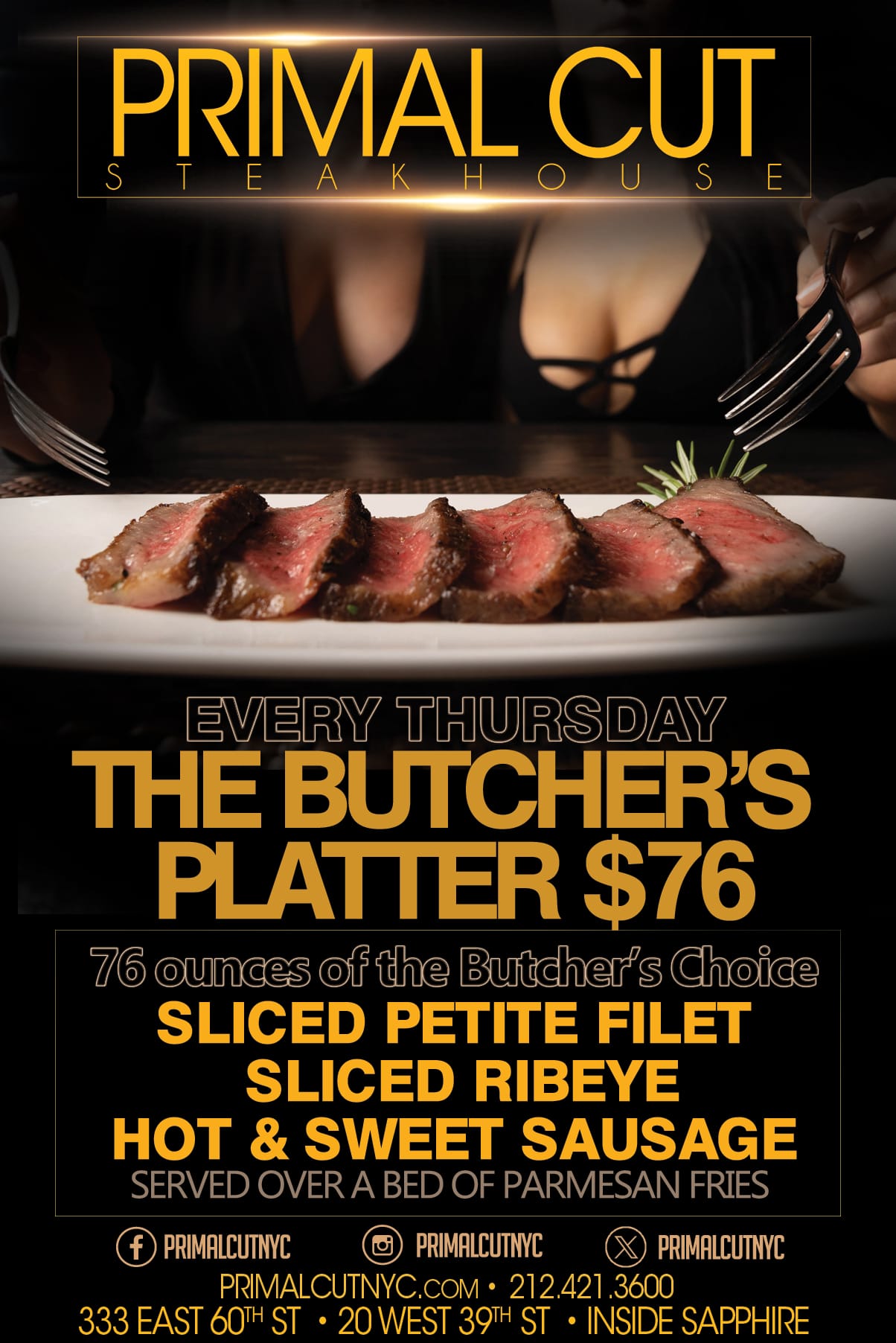 Come join us Every Thursday for The $76 Butcher’s Platter!