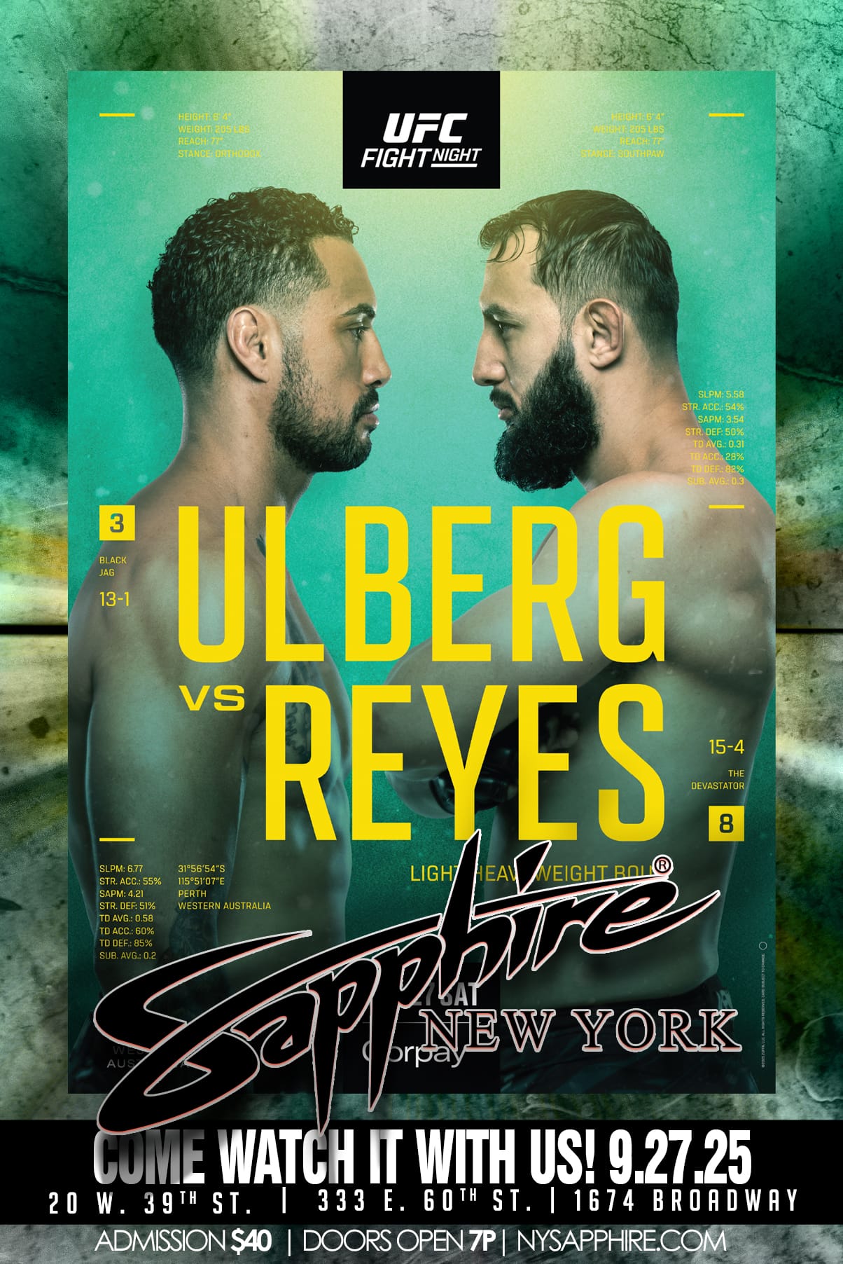 Don’t Miss A Moment Of UFC Fight Night: Ulberg vs Reyes, Live From RAC Arena In Perth, Australia On September 27, 2025